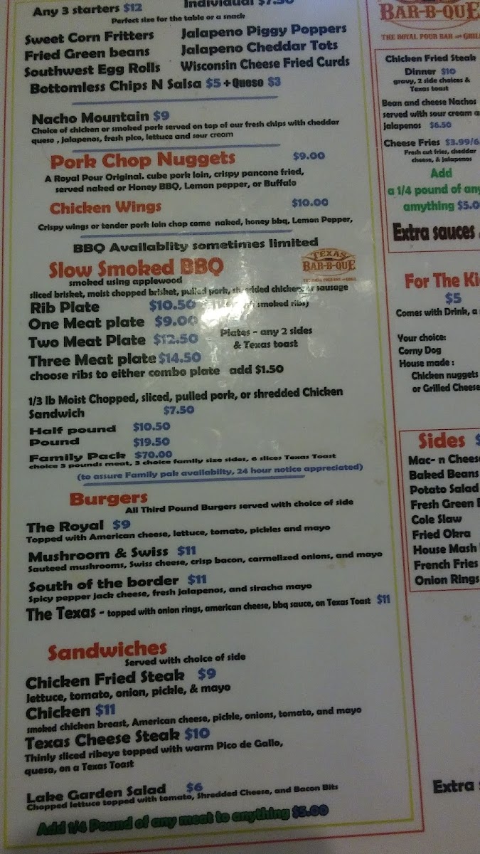 The Royal Pour Bar and Grill Menu (2025 Update)